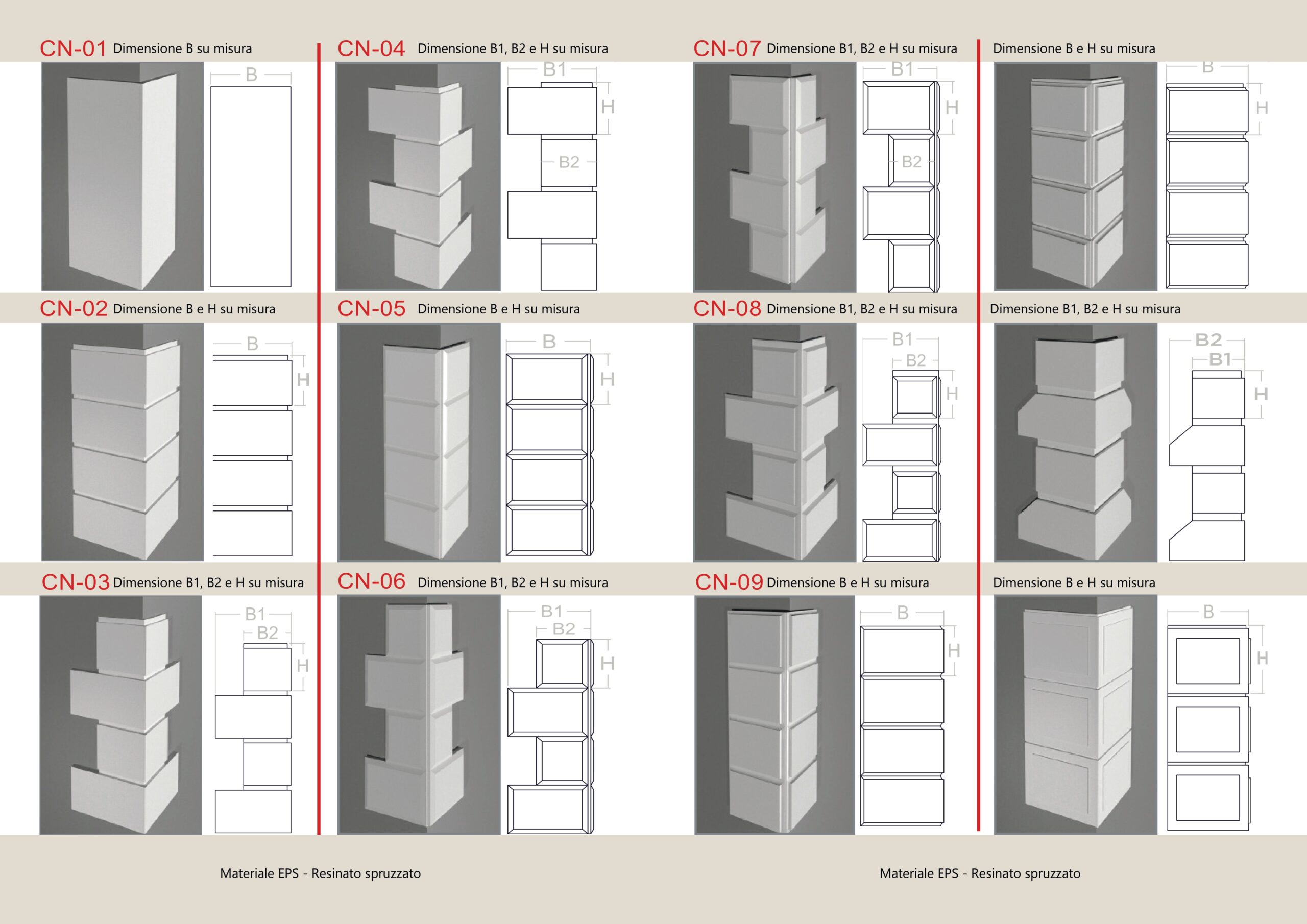 I cantonali sono delle strutture che hanno l’obiettivo di emulare le vecchie formelle in pietra posizionate in corrispondenza degli spigoli delle facciate degli edifici. Rispetto agli antichi decori  hanno naturalmente una superiore semplicità di posa e costi nettamente inferiori.  Disponiamo di numerosi modelli standard, ma all’occorrenza li produciamo su misura in base alla richiesta dei clienti.
